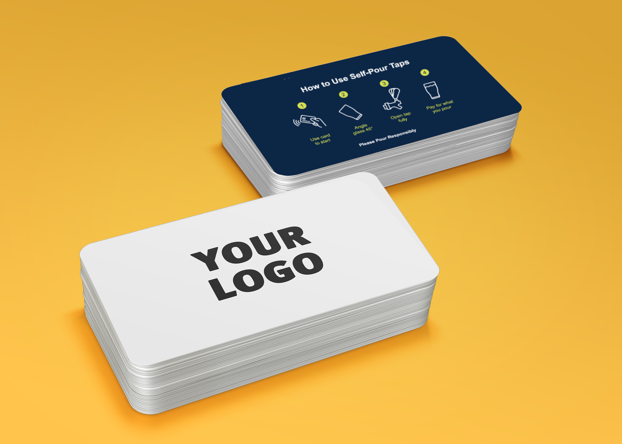 Customized Logo (4CP/Black) on front of card with Light or Dark style PourMyBeer pour instructions on the back.